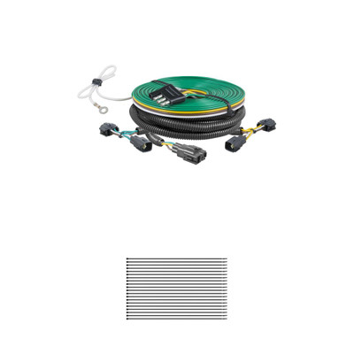 Towing your vehicle behind your RV is a great way to experience more of the adventure on your cross-country excursions. Whether you're towing a compact car or a full-size truck, CURT has the perfect solution to help you Bring It! CURT towed-vehicle RV harnesses are a vehicle-specific, plug-and-play solution to wiring your vehicle for dinghy towing. They use original-equipment-compatible connectors to plug into your vehicle's wiring system without any cutting, splicing or soldering required. They provide a standard 4-way flat connector to plug into the RV socket and synchronize the vehicle's tail lights, turn signals and brake lights with the RV's. Because each towed-vehicle RV harness has a vehicle-specific design, installation is fast and easy. This particular RV dinghy towing wiring harness is designed for specific years of the Jeep Wrangler TJ. CURT RV harnesses are also built to provide long-lasting operation. They feature integrated block diodes that protect the vehicle's circuits from the RV signals. They isolate the sensitive vehicle electronics, keeping them from overheating and short circuiting. Every CURT towed-vehicle RV harness comes ready to install with all necessary hardware included. They also come with a 4-way flat extension to provide plenty of length to plug into the RV socket, as well as a connector mounting bracket to mount the connector on the vehicle.