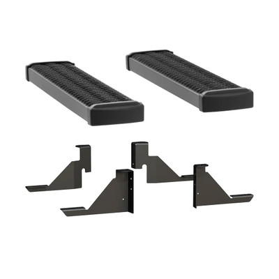 LUVERNE Grip Step 7" running boards for vans are the ideal work van accessories, adding safe, dependable footing to your cargo van with a vehicle-specific fit. Grip Step van steps are equipped with high-traction treads for fleet-approved safety, and they are made from powder-coated aluminum to be lightweight and provide long-lasting resistance to the elements. All Grip Step running boards are engineered for vehicle-specific installation. These van steps offer a custom fit for certain years and styles of the Chevy Express 3500 or 4500 and GMC Savana 3500 or 4500 (see application info to verify fitment with your cargo van). They come with two shorter steps, one for the driver-side door and one for the passenger-side door. They also come with powder-coated steel brackets and stainless steel hardware for a complete install. Grip Step running boards for vans are optimized for delivery trucks, construction vehicles and other commercial vans. They feature a 7" width, covered with expanded metal treads to grip the bottom of your boots for safe entry and exit every time. The metal treads are also highly resistant to wear, and they help keep the steps clean with their open, through-hole design. The aluminum construction of LUVERNE Grip Step running boards makes them strong for a rigid step, but lightweight for optimized fuel efficiency. Aluminum is also highly corrosion-resistant. To maximize corrosion resistance, Grip Step van steps are shielded in a textured black powder coat finish. This gives them an impervious layer of protection against the elements and resists chipping and UV damage. The black running boards also complement the look and style of your cargo van, adding a professional finishing touch. To complete the look, we also offer rear Grip Step van steps, providing safe, convenient access to the rear cargo area.