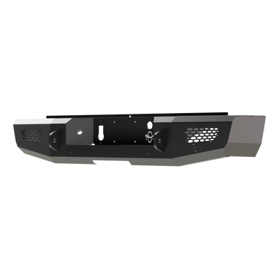 Long days mean you?re up at dark to work, and still up at dark to play. No matter what you?re doing, Midnight by Ranch Hand was designed for those of you who go hard any place, any time. The Midnight rear bumper upholds the highest Ranch Hand standards with its unbeatable durability and toughness that come from its solid structure, yet remains lightweight through innovative design and fabrication. It is made with smooth 7-gauge steel and 1/4? brackets that provide unrivaled strength and stability, and is highly adaptable with a tight fit against the truck for an aggressive look and bold aesthetic. To add to its superior attributes, the Midnight rear bumper contains a number of useful features that add convenience to daily and nightly duties. The truck?s factory receiver hitch is easily accessible and usable, and a spare tire lock cover is also incorporated into it. Additionally, the Midnight allows re-use of an OEM trailer plug adapter and accommodates shackle brackets, LED license plate lights, and integrated reverse lights to make upgrading simpler than ever. Its 3/5mm thick, textured matte black powder coat finish provides superior corrosion resistance, allowing you to be bold, daring and fearless through every adventure ahead. Whether you?re working and playing hard in the early hours of the morning, the heat of the middle of the day, or in the wee hours of the night, the Midnight rear bumper gives you the authority to accomplish any task with confidence.
